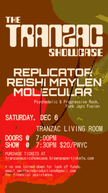 Original music event featuring three bands: Molecular, Reishi Maylen, and Replicator